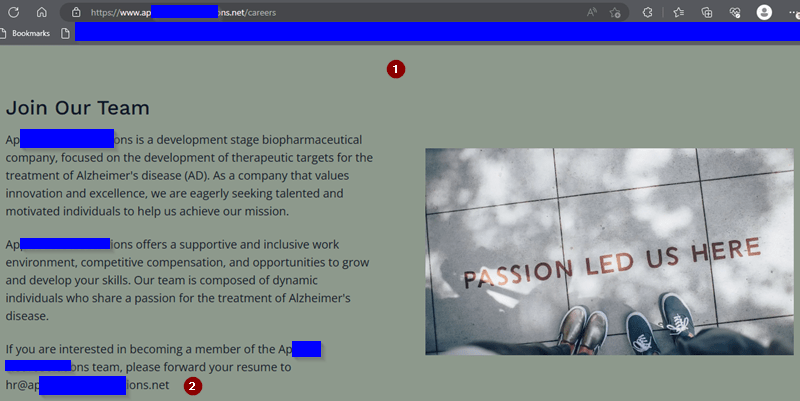 In addition to the copycat web domain, the cyber actors also either created a new LinkedIn profile or took over the company’s existing profile. In this profile, they had the HR representative and the copycat web address.
