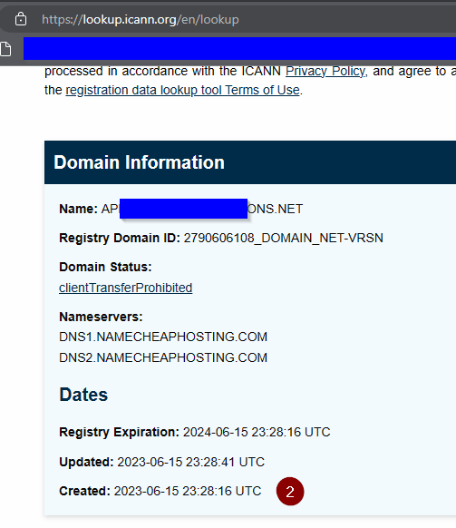 In this case, cyber actors first compromised a website, copying its web pages as part of its infiltration. While I can’t tell what platform the original company uses to host their website, I feel that Collection | Data from Cloud Storage and Exfiltration | Exfiltration over Web Service describes this sufficiently. They then registered a new website with a similar name. (Resource Development | Acquire Infrastructure) and left a redirect URL on the original company’s home page (Impact | Defacement) to deflect people trying to confirm with the real company.