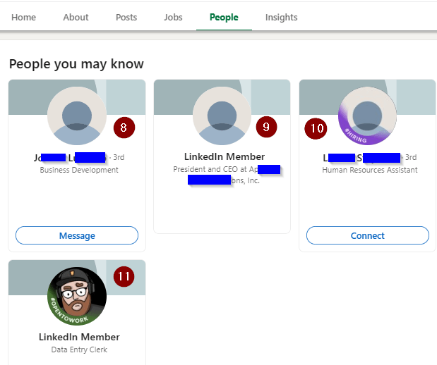 - Of the four people associated with the site, it’s interesting that none of them have real-life profile photos. PS: If you look on this person’s profile, you’ll find out their role at this company is also “Data Entry Clerk”, the offered position.