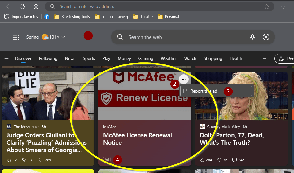 - Unlike the news articles, ads are marked as such by Edge and do not have the social media options to like/dislike or comment.
