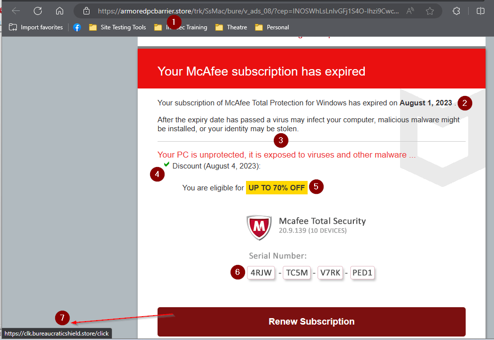 In these examples, the cyber actor sending the Norton renewal wants your credit card information. The cyber actor who set up the fake McAfee renewal ad wants you to click through to a certain site and potentially download an “update” that really is their command and controlagent to connect to your device.
